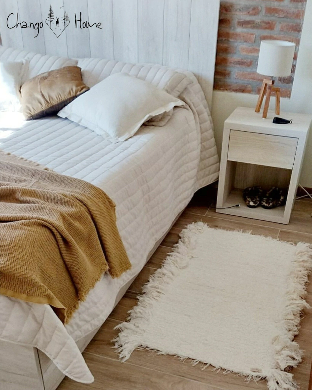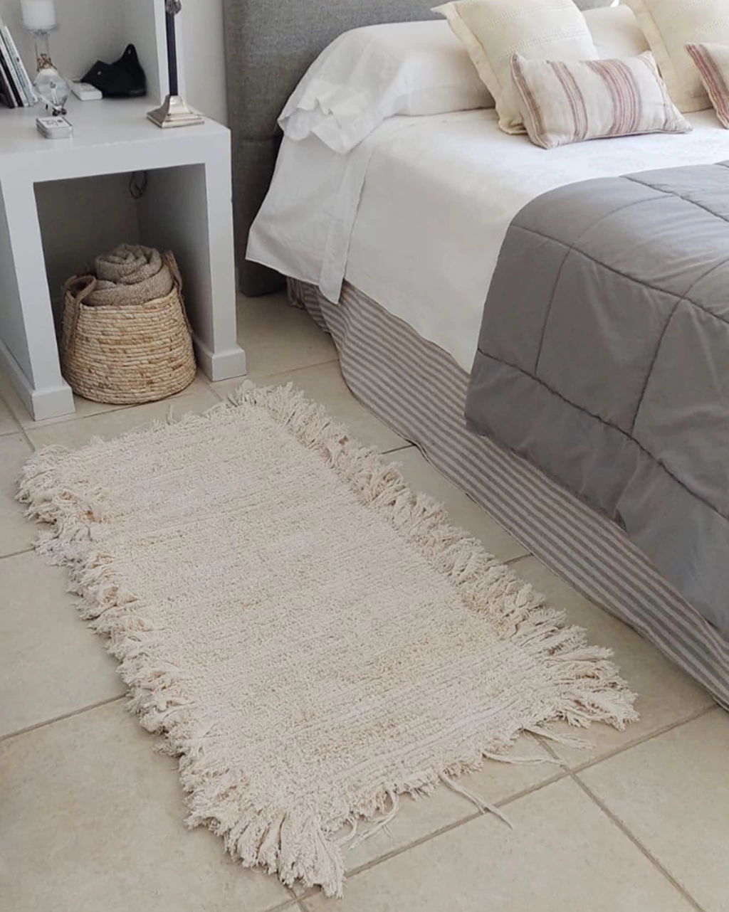 Alfombra Artesanal tejida en telar, confeccionada en algodón rústico. Perfecta para colocar al bajar de la cama y arrancar el día pisando una nube, Super Mullida! no solo embellecerá tus espacios, sino que también es apta para lavarropas, facilitando su mantenimiento. Ten en cuenta que, al ser un producto artesanal, puede variar levemente en medida y textura, haciendo de cada pieza algo único. ¡Agrega un toque especial a tu hogar!