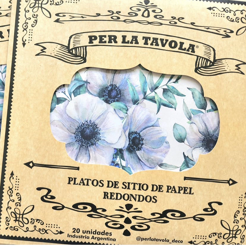 Pack de Platos de sitio de papel: la elección perfecta para tus eventos. Este set incluye 20 unidades con un diametro de 34cm - diseños modernos y elegantes, presentados en un sobre contenedor que añade un toque de distinción.